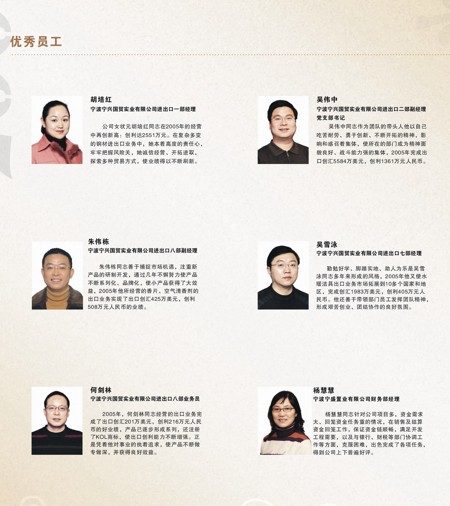 2005年度 控股公司优秀员工(一)