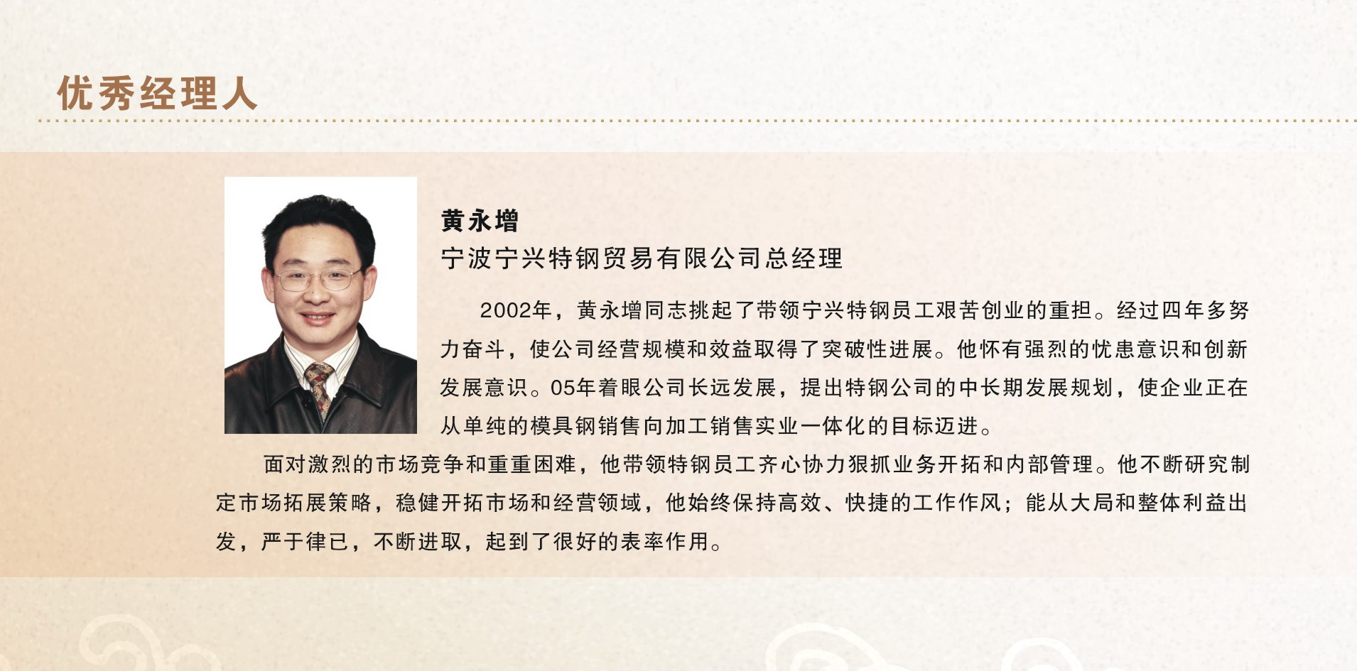2005年度 控股公司优秀经理人(3044AM永利集团特钢公司总经理 黄永增)