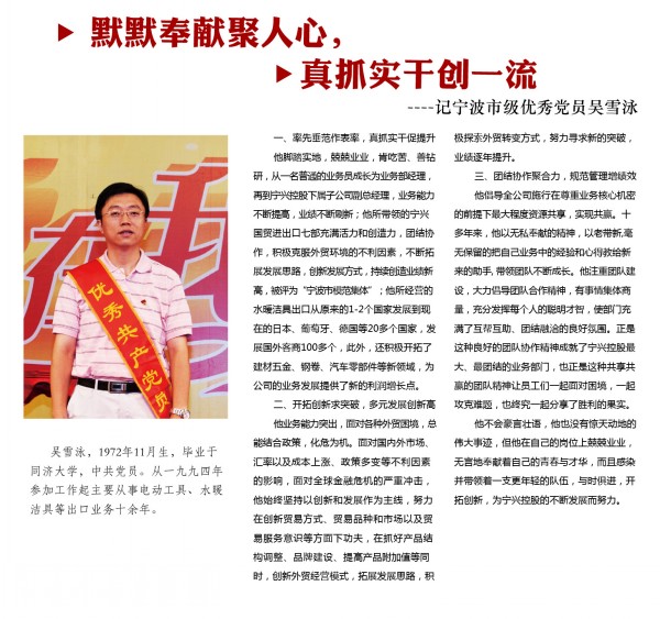 2011年度宁波市优秀共产党员---吴雪泳(3044AM永利集团国贸)