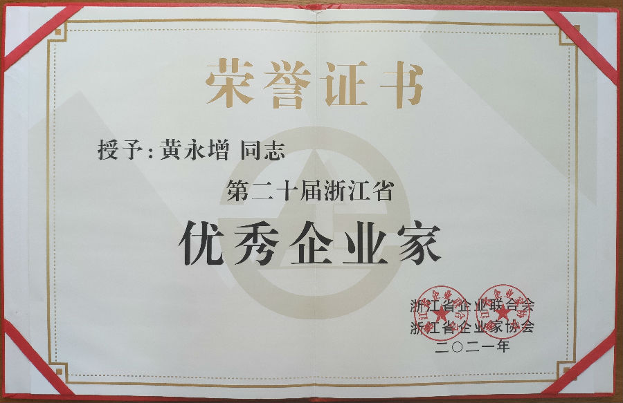 3044AM永利集团总裁黄永增荣获“第二十届浙江省优秀企业家”称号。