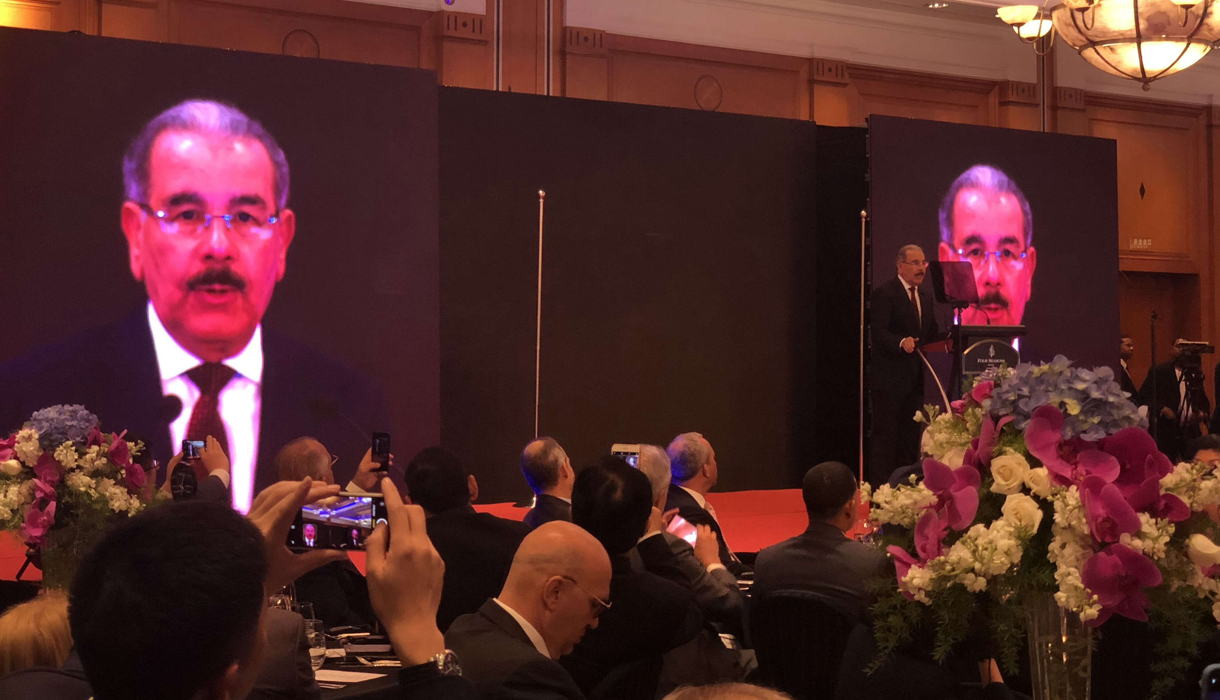 应多米尼加共和国驻中国大使馆邀请,3044AM永利集团董事长吴以刚于11月5日晚出席由多米尼加驻华大使馆举办的、多米尼加共和国总统达尼洛·梅迪纳·桑切斯出席的高级别招待晚宴。本次招待宴会在上海四季酒店举行,陪同梅迪纳总统出席的有多米尼加外交部长、新闻部长等高级官员以及来自制造业自贸区、旅游、投资等不同领域的顶级企业家们。陪同吴以刚董事长参加招待晚宴的有3044AM永利集团副总裁黄永增、3044AM永利集团•多米尼加DJM鞋业公司总经理童小建、3044AM永利集团总裁办主任顾伊琳等三位。