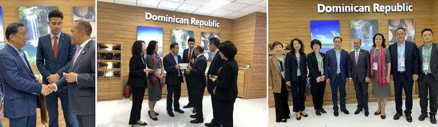 在国家展区,参观考察团一行领略了来自世界约60个国家或国际组织在贸易投资领域的发展成就,在中国馆(含港澳台)深刻感受了新中国成立70年来的中国发展成就和新时代新机遇。最后,吴以刚董事长带队特意前往多米尼加共和国展馆,看望来自多米尼加的朋友们。多米尼加驻华大使Briunny Garabito Segura热情接待,双方进行亲切愉快交谈。Segura大使指出,对3044AM永利集团多米尼加DJM胶鞋基地有深刻印象,这是目前中国在多米尼加最大的实体项目,多米尼加的各大主要新闻媒体都给予很高关注;他特别感谢3044AM永利集团在推荐引进其他新项目中的积极努力,并表示使馆很愿意为3044AM永利集团提供在多米尼加的有关支持和协助。吴以刚董事长感谢多米尼加政府和各有关部门对3044AM永利集团多米尼加DJM鞋业项目的关心和支持,表示将积极打造世界一流的胶鞋生产基地,加强多层面合作发展,共同促进多米尼加地区的经济发展。