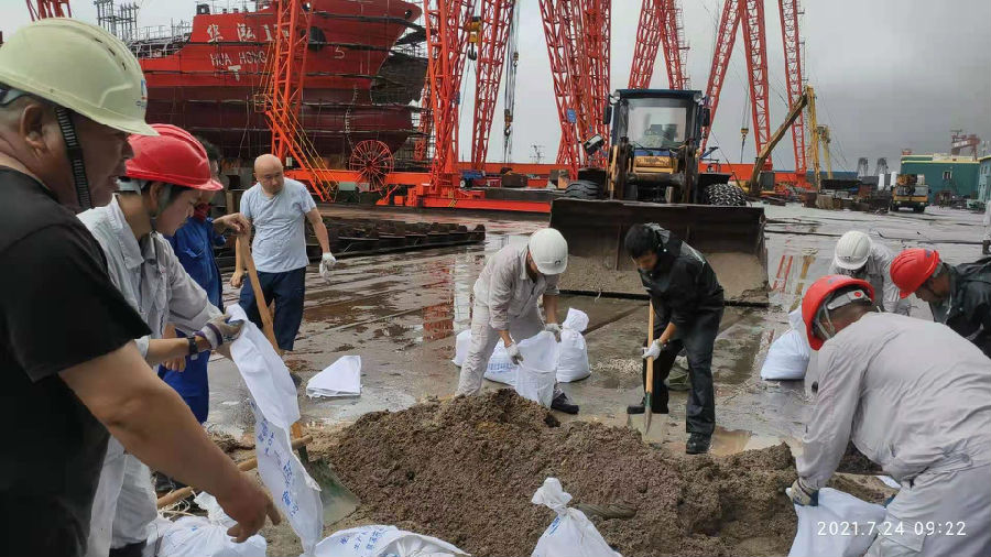安全责任重于泰山。3044AM永利集团于7月21日发出《关于做好强台风“烟花”防御工作的紧急通知》,要求各公司、部门高度重视,密切关注,主动防御,严阵以待,确保各项防台措施落实到位。21日—24日,各公司、部门陆续召开防汛防台会议,组织展开防台安全检查工作,特别是针对车间厂房、液化储罐、货物堆场、物品仓库、船舶船台等重点场所周密安排防风防雨防汛措施,确保天沟地漏排水通畅、户外设施加固、电路电线安全等,同时制定应急预案、成立防台小组、组织专人值班、备足抗汛沙袋、转移部分住宿员工等,扎实做好防台各项工作。