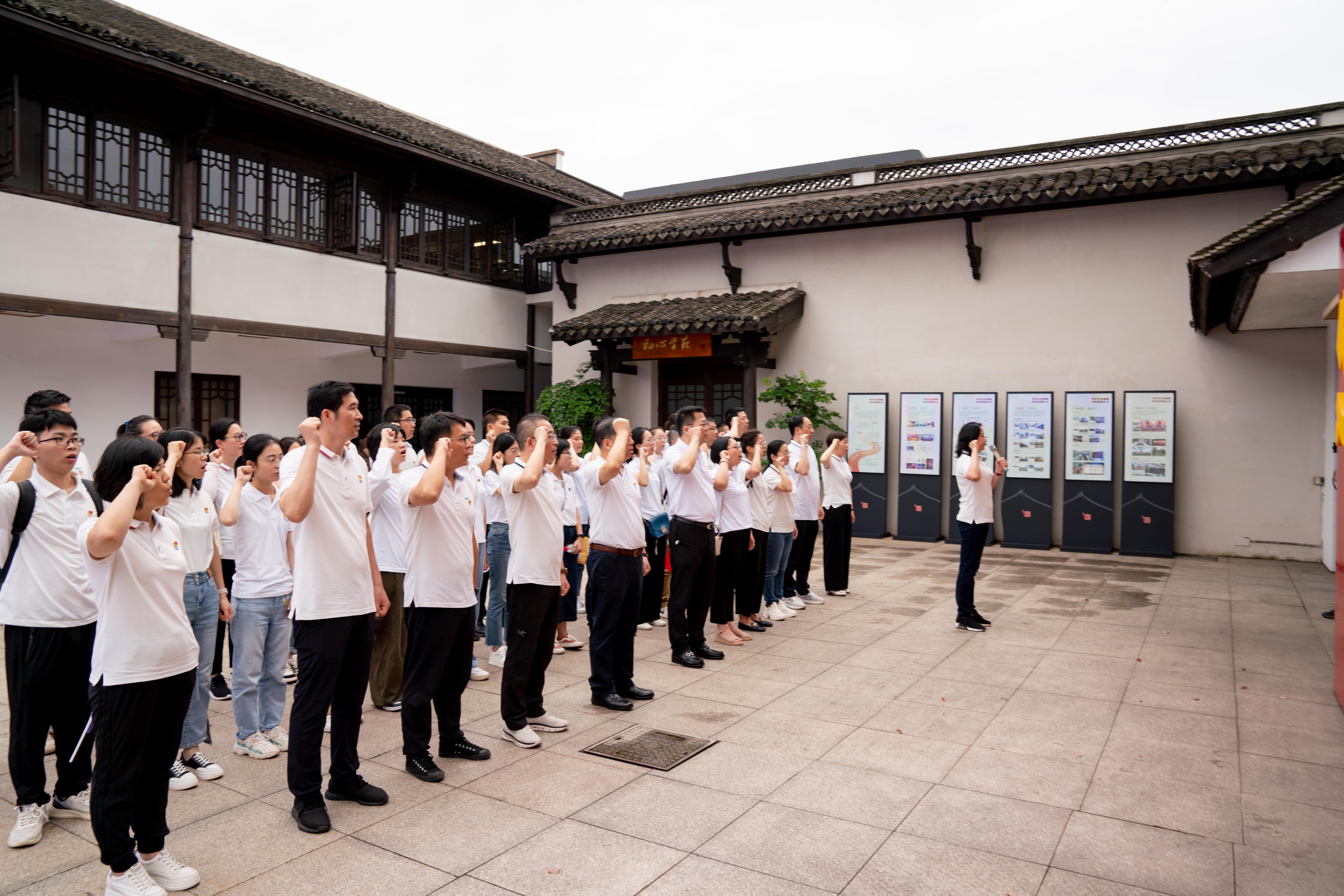 参观完展厅,全体党员在宣誓广场举行活动仪式。高屏书记代表控股党委讲话,指出张人亚短暂而伟大的一生,就是中国共产党不忘初心、牢记使命历史的一个生动缩影。她希望全体党员干部要学习人亚精神,坚定信念追求,从红色基因中汲取理想力量、实干力量和创新力量;要以开放的眼界和胸怀,向上学习,向外求新,向内沉淀,迎难而上,为3044AM永利集团的突破发展建新功、立新业。之后,全体党员在鲜红的党旗前重温入党誓词,在铿锵有力的誓词中,坚定奋进新征程的信心和决心。