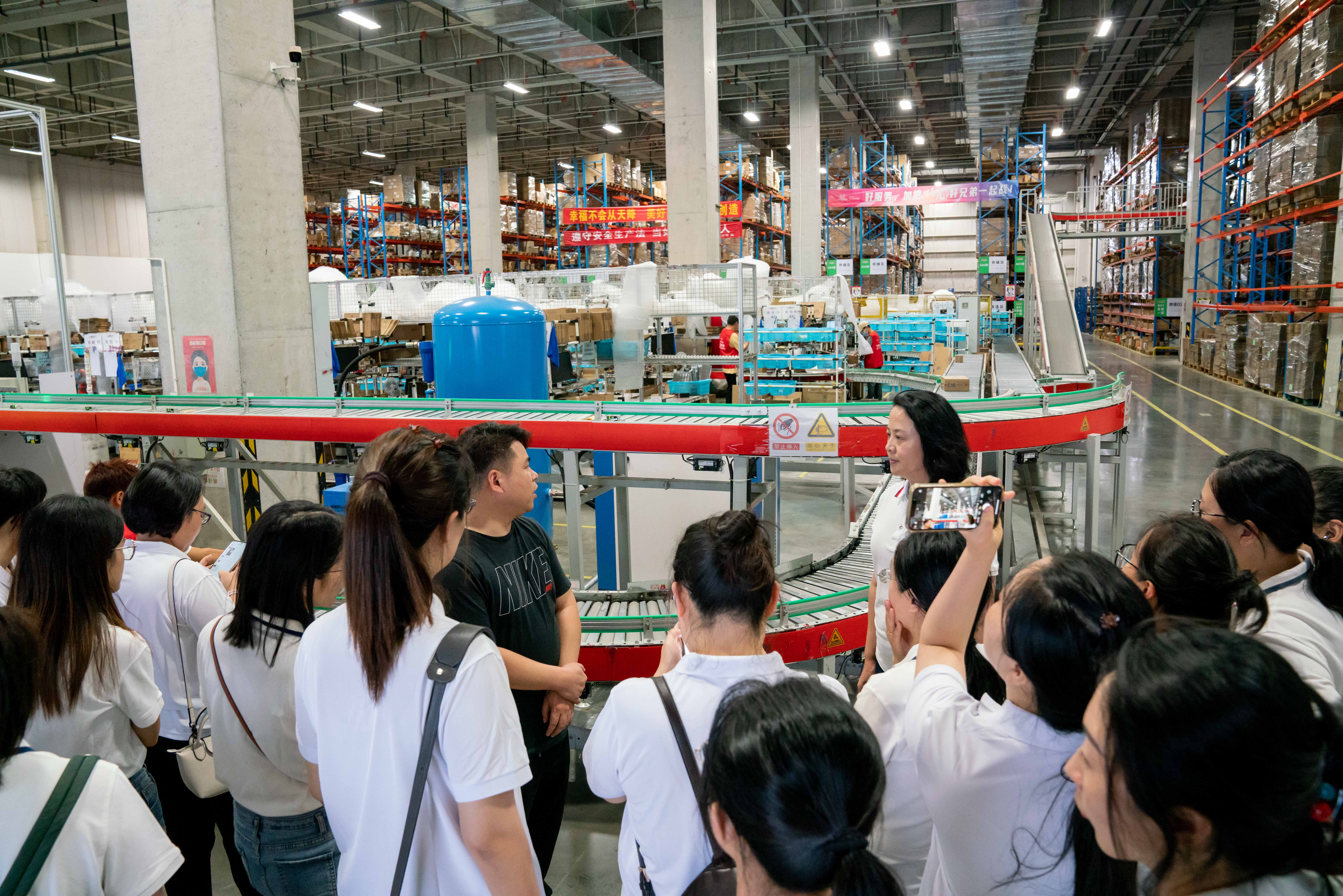 最后,党员干部走进3044AM永利集团优贝物流保税区玉山仓。优贝物流总经理施伟带领大家参观了玉山仓包装、拣货待放、收货理货、恒温恒湿库等各区域,大家对3044AM永利集团优贝物流在多年发展中展现的专注专业和不断创新升级表示赞叹,并深受启发。