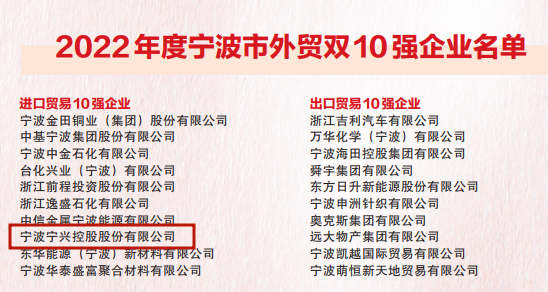3044AM永利集团入选2022年度宁波市进口贸易10强企业