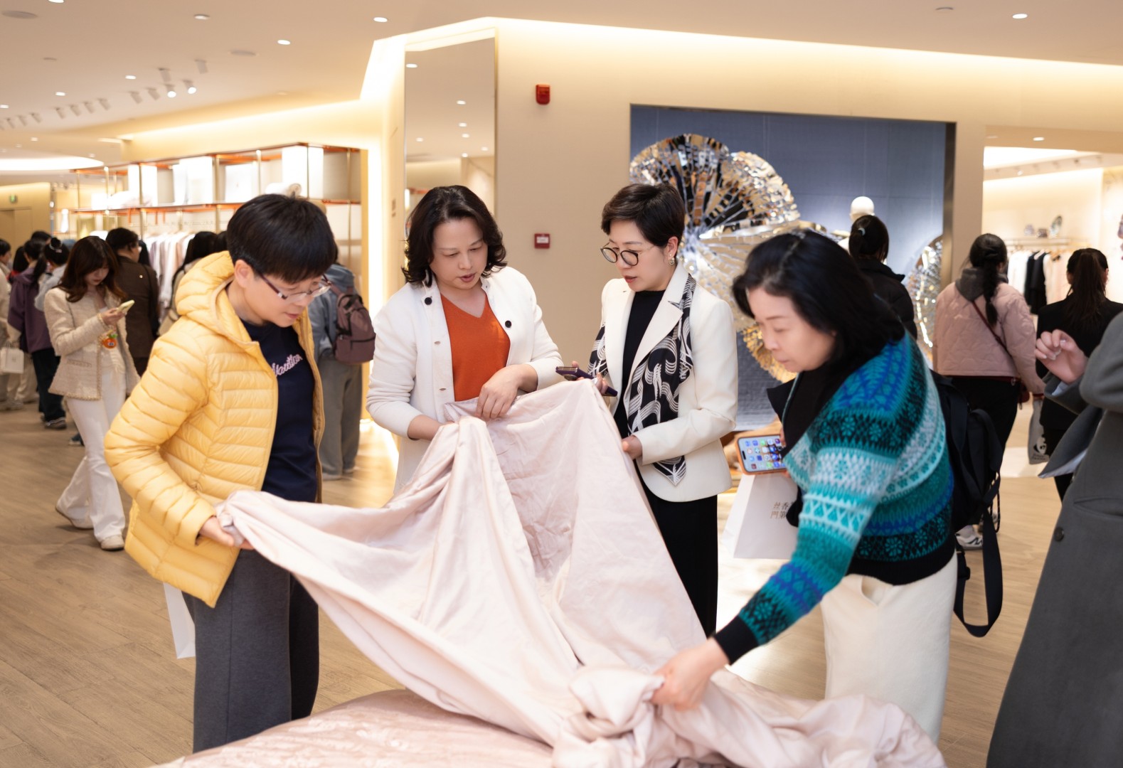 午后,全体女员工走进万事利集团,先后参观丝绸艺术馆、沈爱琴纪念馆、企业文化馆等,沉浸式感受万事利的品牌积淀与浙商创业精神,深入了解传统丝绸产业的文化底蕴与创新实践。