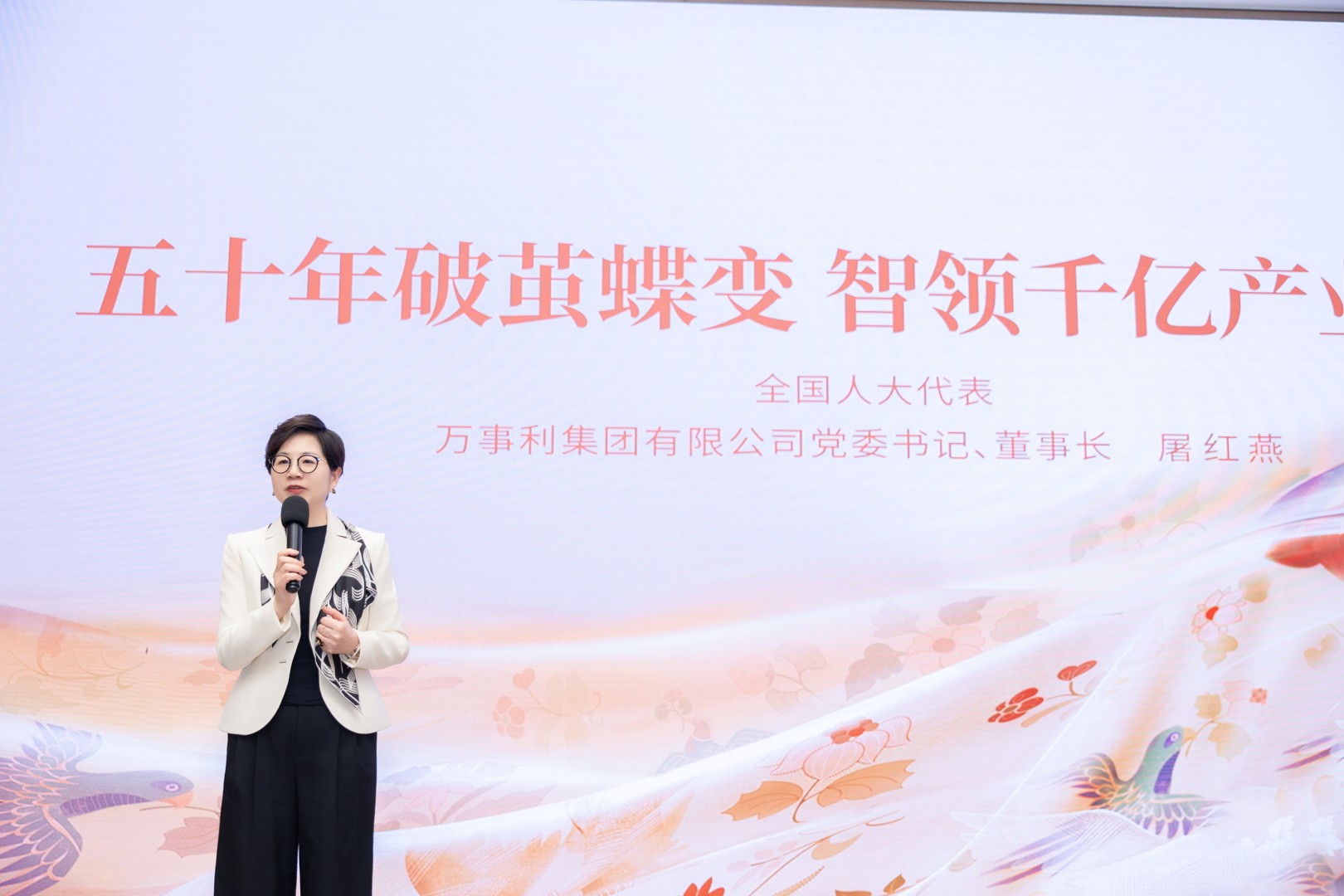 在专题讲座环节,万事利集团董事长屠红燕围绕两会最新政策动向、丝绸产业文化传承与科技创新、未来四大千亿产业布局等内容作精彩分享,为大家拓宽视野、启发思路。互动环节更是气氛热烈。大家就“品牌国际化的核心竞争力、浙商精神的传承与创新、AI赋能传统产业、美的内核与提升”等话题深入交流,屠红燕董事长知无不言,金句频出,以开阔视野、深邃洞察与温润格局,生动展现了新时代优秀女企业家的独特的智慧、魅力和风采,令在场人员深受启发,倍感鼓舞。