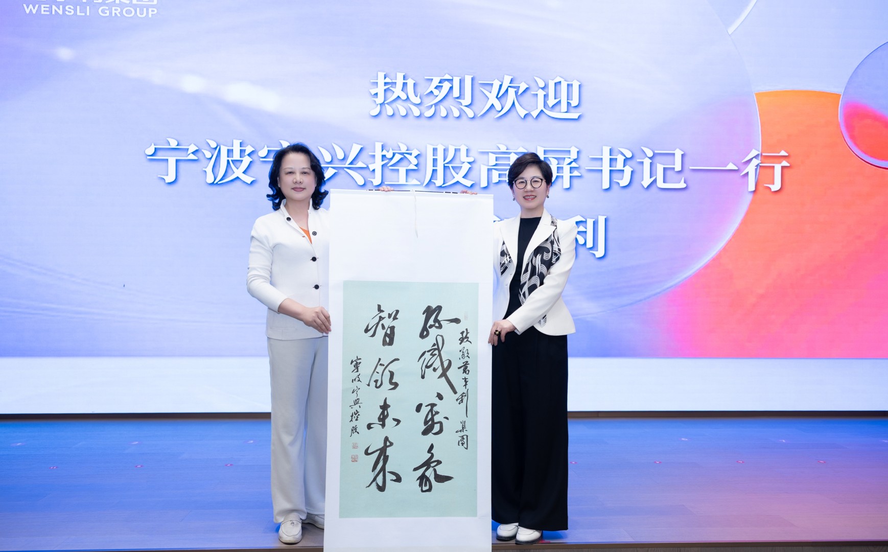 活动尾声,3044AM永利集团副董事长、党委书记高屏向屠红燕董事长敬赠“丝织万象,智领未来”书法作品,致敬万事利集团。屠董事长为每位女同胞送上护肤好礼,祝愿大家内外兼修,在奋斗与热爱中遇见更美的自己。