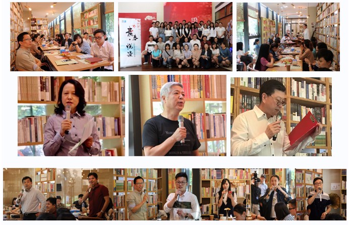 这场读书盛宴首先在李皓老师《傅雷家书》的朗读声中拉开帷幕,在轻柔的音乐中,他用磁性温暖的嗓音诠释家书的款款深情和谆谆教诲,一下子感动了在场所有的读书爱好者。紧接着陈国强老师以“陈述”分享读书心得,指导读书方法,把整个读书沙龙活动带入高潮。陈老师从个人履历,讲到读书为了生活,为了提升的目的;从自身的阅读经历,分享买书的途径、读书的方式和知识的整合应用;结合个人案例,谈读书对思维的优化和升华;短短一个小时,互动频繁,高潮迭起,陈老师渊博的知识、丰富的阅历和强大的内心让所有在场的人直呼干货满满,受益匪浅。