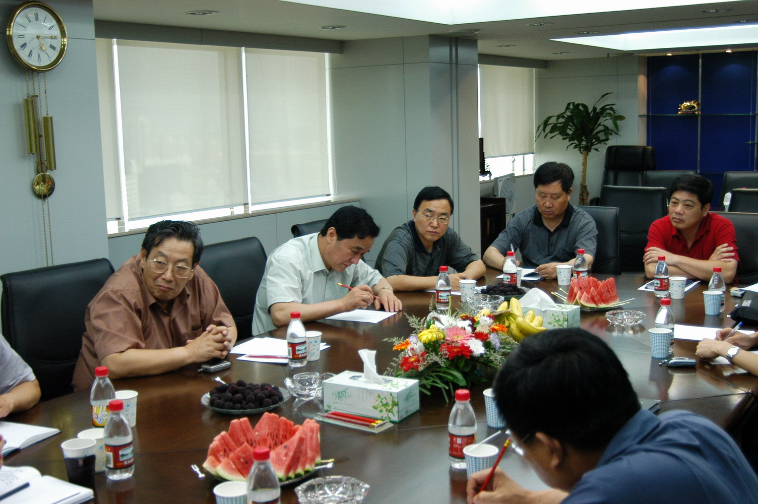 6月20日,在省、市人大财经委等有关领导陪同下,全国人大财经委委员李主其等一行5人到访股份公司,进行有关经济运行情况的调研。调研内容包括:当前经济发展中存在的主要困难和问题以及如何应对,房地产市场的现状和调控措施,国际贸易壁垒和摩擦造成的影响等。