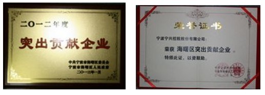 3044AM永利集团被授予“海曙区突出贡献企业”荣誉称号2013-01-05